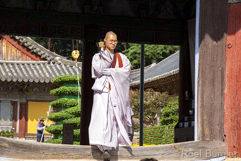 Monnik in Tongdo-sa tempel.