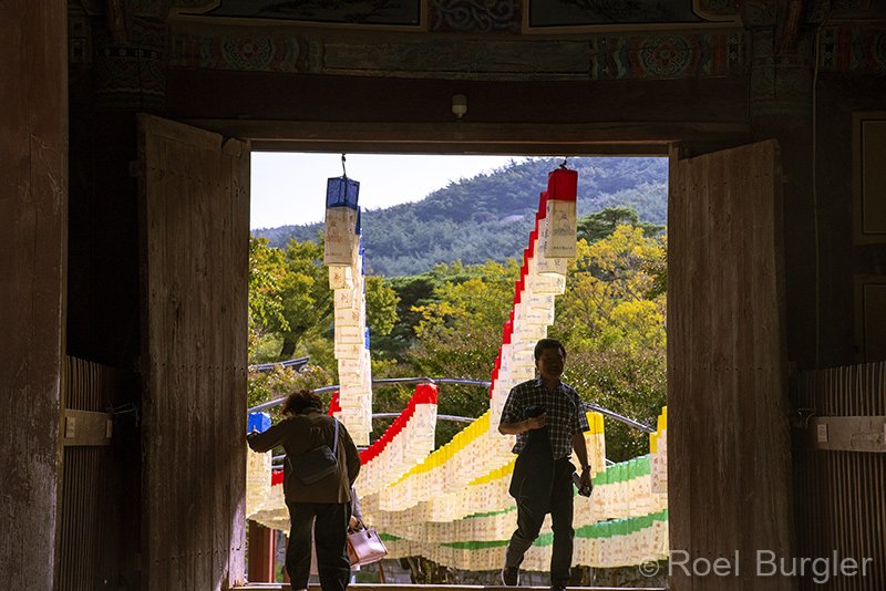 Poort en wens lampionnetjes in Tongdo-sa.