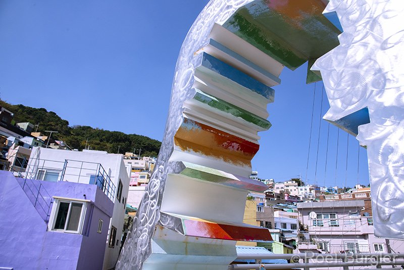 Kunst harp in Gamcheon, opgeknapte buurt in Busan.